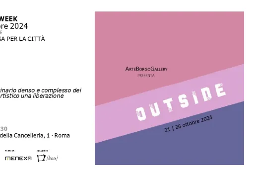 “Outside” è il titolo della mostra ideata da Anna Isopo di Arte Borgo Gallery ed inserita nella IX edizione di RAW 2024 che si svolgerà presso il Palazzo della Cancelleria Vaticana, un edificio di grande valore storico affacciato sull'omonima piazza nel centro di Roma, vicino a Campo de’ Fiori.