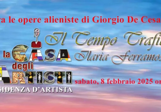 Proseguono ancora, nel mese di febbraio, gli incontri de La casa degli Artisti di Gallipoli, scrigno d’arte e cultura nel cuore del Salento. Conclusasi l’11 gennaio la mostra alienista “Peace and Love”, di cui il pittore e scultore Giorgio De Cesario è stato direttore artistico e curatore, sarà la volta della presentazione di un giallo: “Il tempo trafitto”, di Ilaria Ferramosca. L’incontro è inserito nel cartellone eventi del Movimento Alienista, di cui De Cesario è fondatore e mente propulsiva, insieme alla consorte, la professoressa Maria Cristina Maritati, entrambi padroni di casa nella casa-museo dove è ubicata la Galleria Permanente dell’artista.