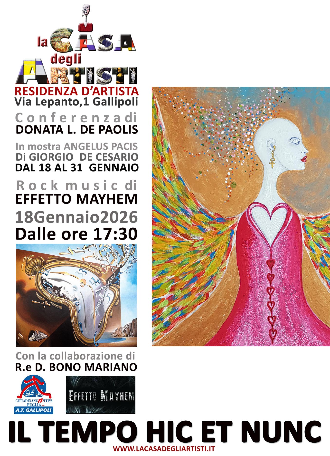 Incontro/Conferenza tra arte e musica “Il tempo hic et nunc”, con la ricercatrice Donata L. De Paolis, la rock band Effetto Mayhem e l’“Angelus Pacis” dell’artista Giorgio De Cesario.